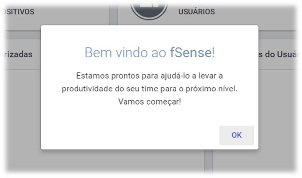 Ao efetuar o primeiro login, o usuário é recebido com uma tela de boas vindas.