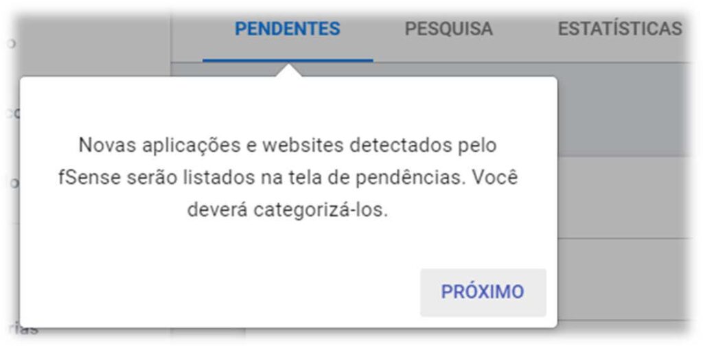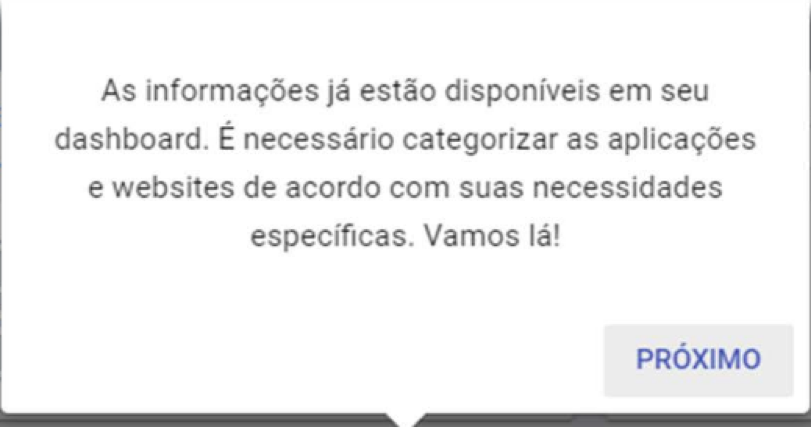 Ao receber informações dos computadores monitorados, o usuário será orientado a categorizar as aplicações e web sites identificados.