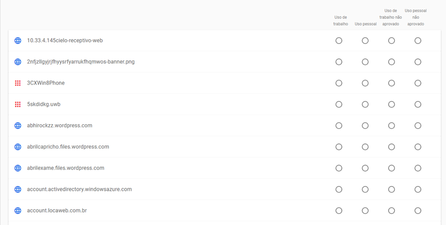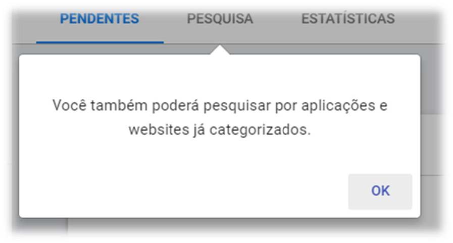O usuário será orientado para que categorize as aplicações e web sites coletados até o momento. Obviamente, esta categorização poderá ocorrer sempre que necessário de acordo com as necessidades do negócio.