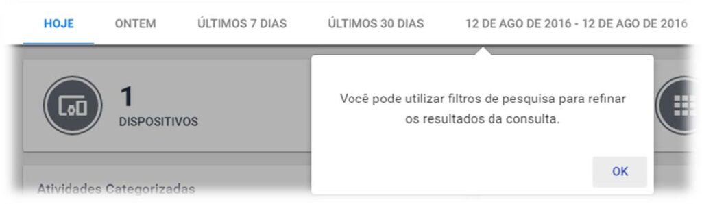 Este mesmo comportamento pode ser aplicado também quando é efetuado um zoom em determinado período da linha do tempo.