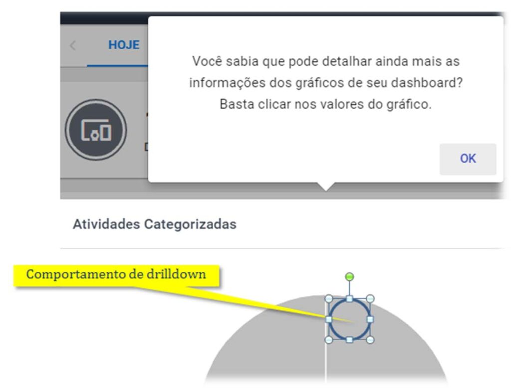 É possível detalhar as informações apresentadas nos gráficos clicando sobre o mesmo. Ao navegar pelo dashboard, o usuário também é orientado em relação a este comportamento.