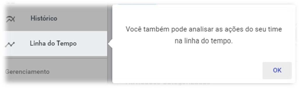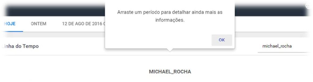 A [Linha do Tempo] é uma funcionalidade que permite visualizar as ações executadas por um determinado usuário – dos computadores monitorados – na linha do tempo, durante o período de trabalho.