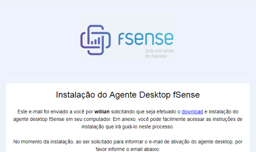 Neste caso, respectiva pessoa do e-mail informado receberá um e-mail contendo as instruções para que possa efetuar o download e instalação do agente desktop.