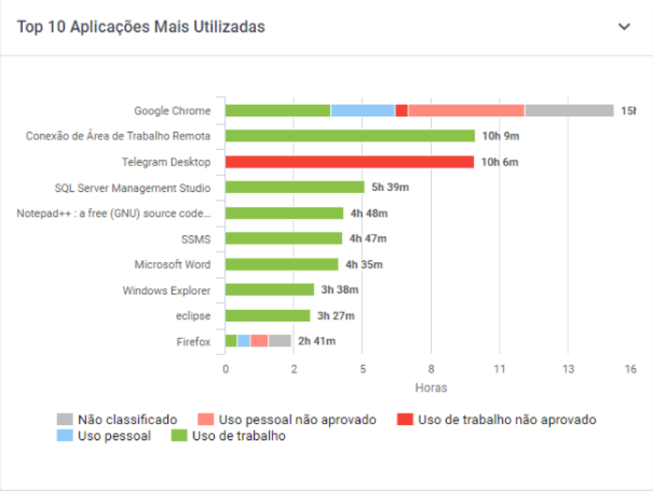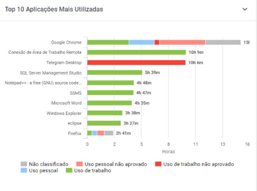 Ao classificá-lo como [Uso de Trabalho Não Aprovado], ficaria evidente a sua utilização, por exemplo, nos gráficos do [Resumo], possibilitando que você tenha insights rápidos sobre o comportamento de utilização de aplicações.