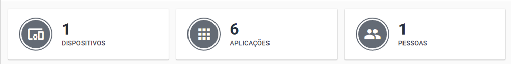Os Cards representam informações rápidas do total de dispositivos, aplicações e usuários monitorados vinculadas a respectiva conta em visualização, considerando, obviamente, filtros de consulta aplicados.