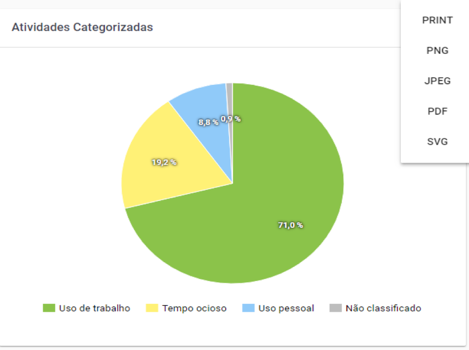 É possível, na maioria dos gráficos, exportar a exibição atual dos mesmos. Utilize o menu superior direito existente no gráfico para efetuar a exportação.
