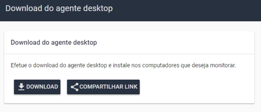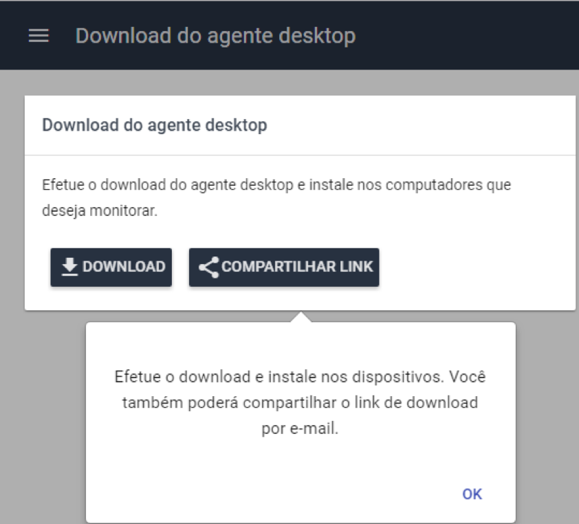 Ao clicar no ícone, o usuário é redirecionado para página onde poderá efetuar o download do agente desktop, de forma direta, ou compartilhar o link de download para os e-mails que achar necessário.