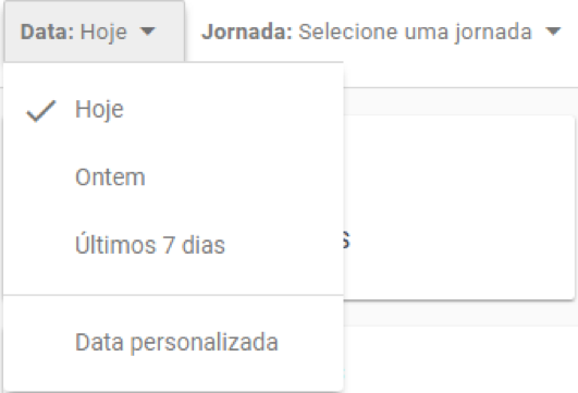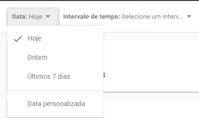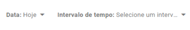 Os filtros de período localizam-se na posição superior central do dashboard: