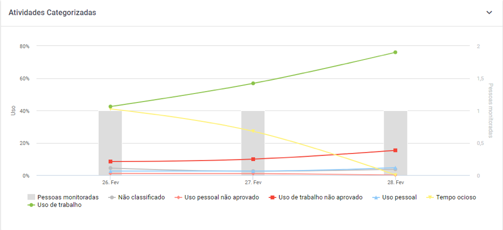 A categorização é uma funcionalidade que permite associar aplicações e web sites monitorados às categorias de negócio de tal forma que seja possível visualizar no dashboard, de forma simples e intuitiva, o comportamento de cada membro da equipe assim como o desempenho geral voltado ao negócio.