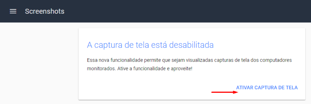 Por padrão, a funcionalidade de captura de tela é desabilitada. É possível ativá-la clicando no botão ‘Ativar Captura de Tela’.