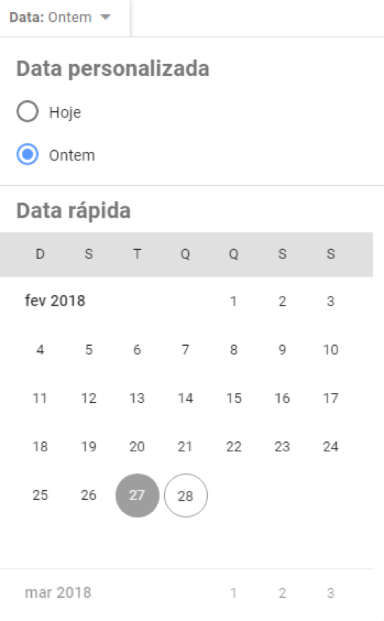 Podem ser utilizados os filtros rápidos como [Data; Intervalo de Tempo;]