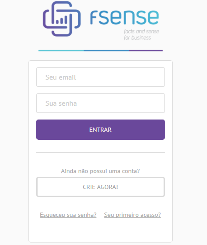 A página de login pode ser acessada por meio do link [ENTRAR], existente no site https://fsense.com.
