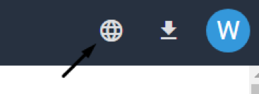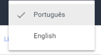 É possível alterar o idioma pelo ícone de idioma na barra superior, sendo possível escolher entre os idiomas: português e inglês.