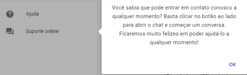 É possível acessar o e-mail de contato diretamente pelo dashboard. Acesse o menu superior direito e escolha a opção [Contato] para ser redirecionado para a página do e-mail de contato.